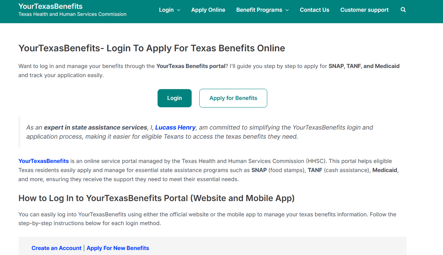 This page clearly explains how Texas residents can apply for public assistance programs using the official YourTexasBenefits system step by step and without confusion.